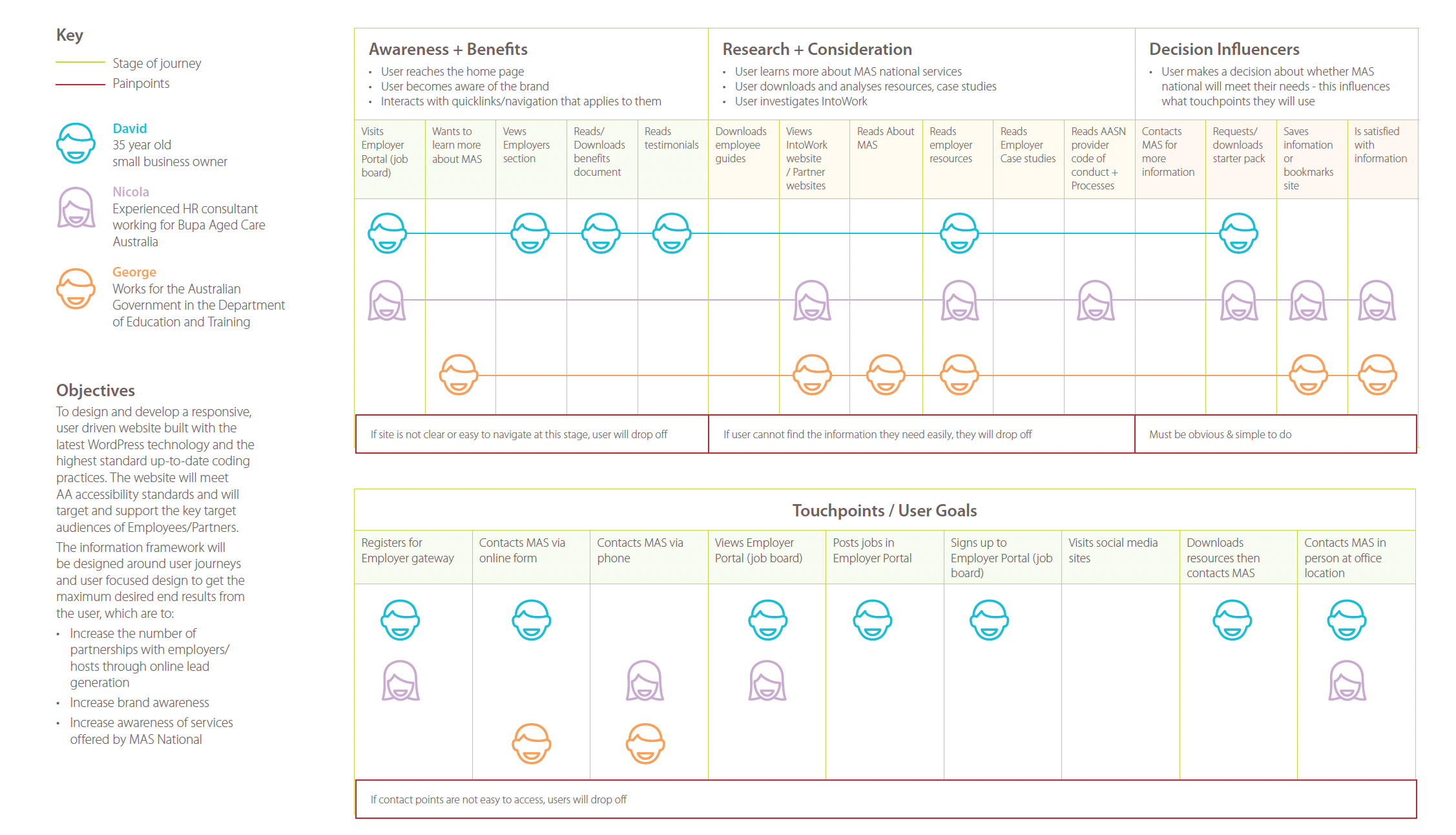 We embrace persona development for websites due to the multitude of advantages it brings. Firstly, it empowers you to connect with your audience on a deeper level by uncovering their unique demographics, preferences, pain points, and motivations. Armed with this invaluable insight, our website designers, developers and copywriters can craft a digital experience that resonates with your users, leading to higher levels of engagement and satisfaction.